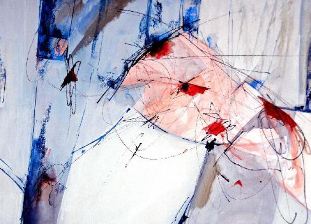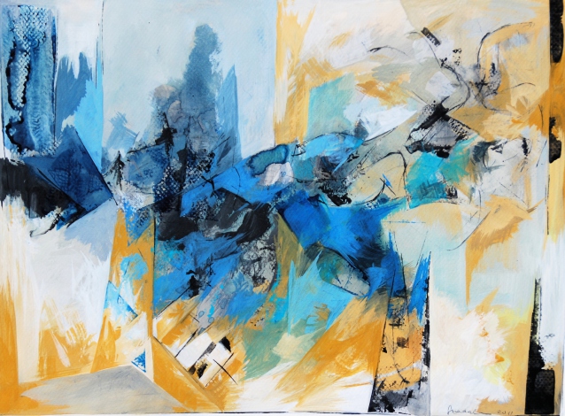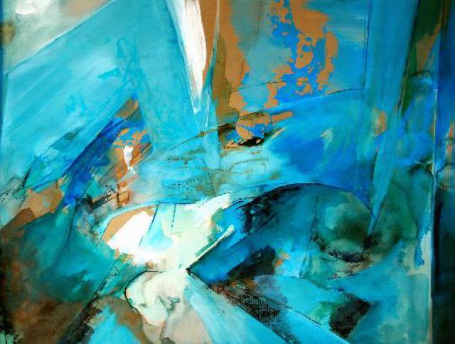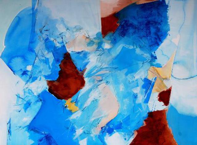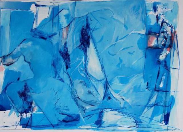 Blaue Splitter 2001 55x65 cm Gouache und Pastell